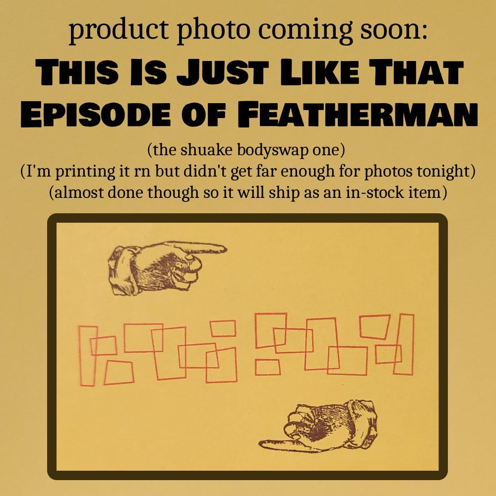 If you purchase a booklet in the same order as the SHUAKE DIVORCE ZINE, the booklet(s) will ship first and the divorce zine will NOT ship until fulfillment is complete early next year. Please specify in your order notes/instructions if you would like your booklet(s) to be held to ship with the divorce zine.
